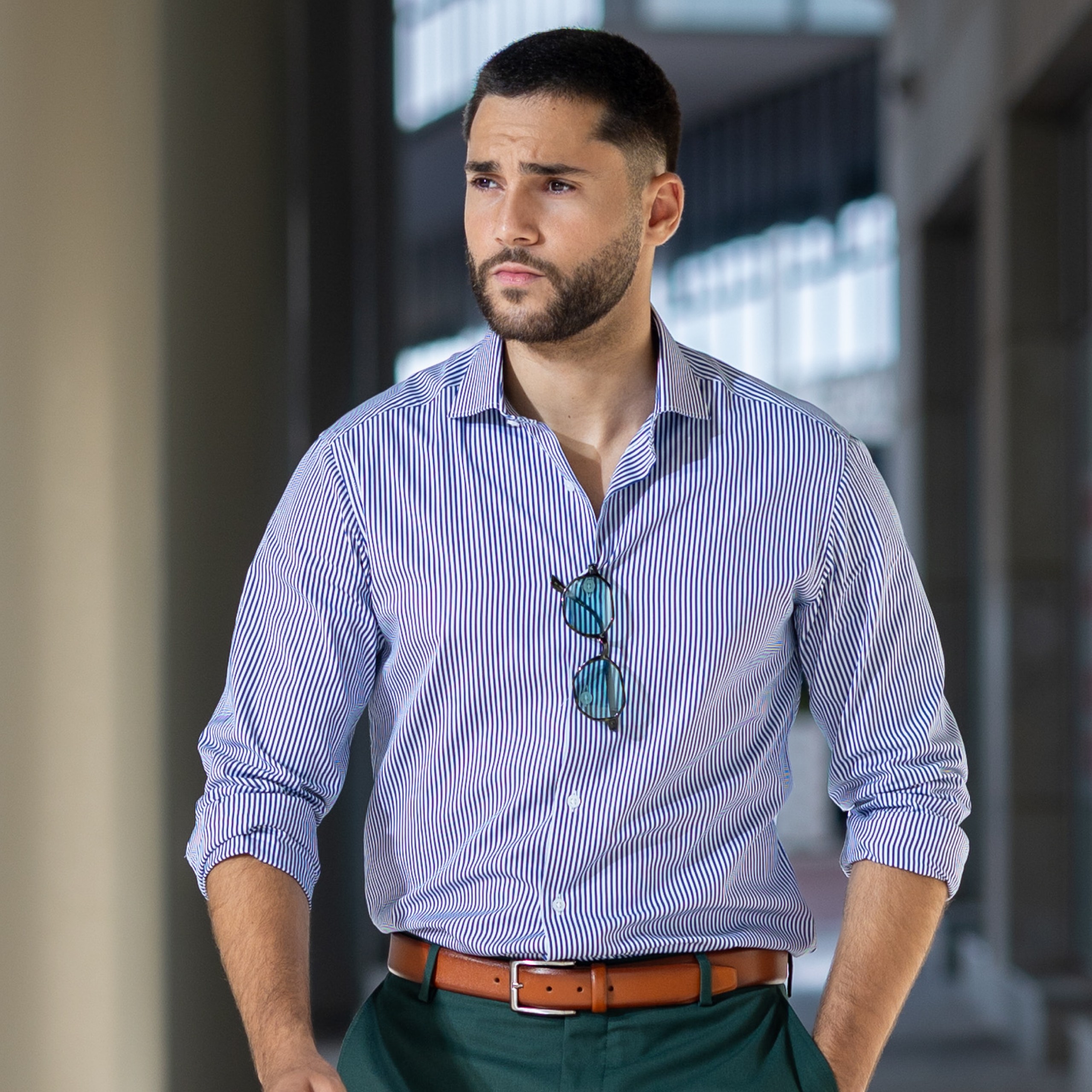 Chemise Ajustée rayé Col Blanc Poignet Blanc – Bleu ciel