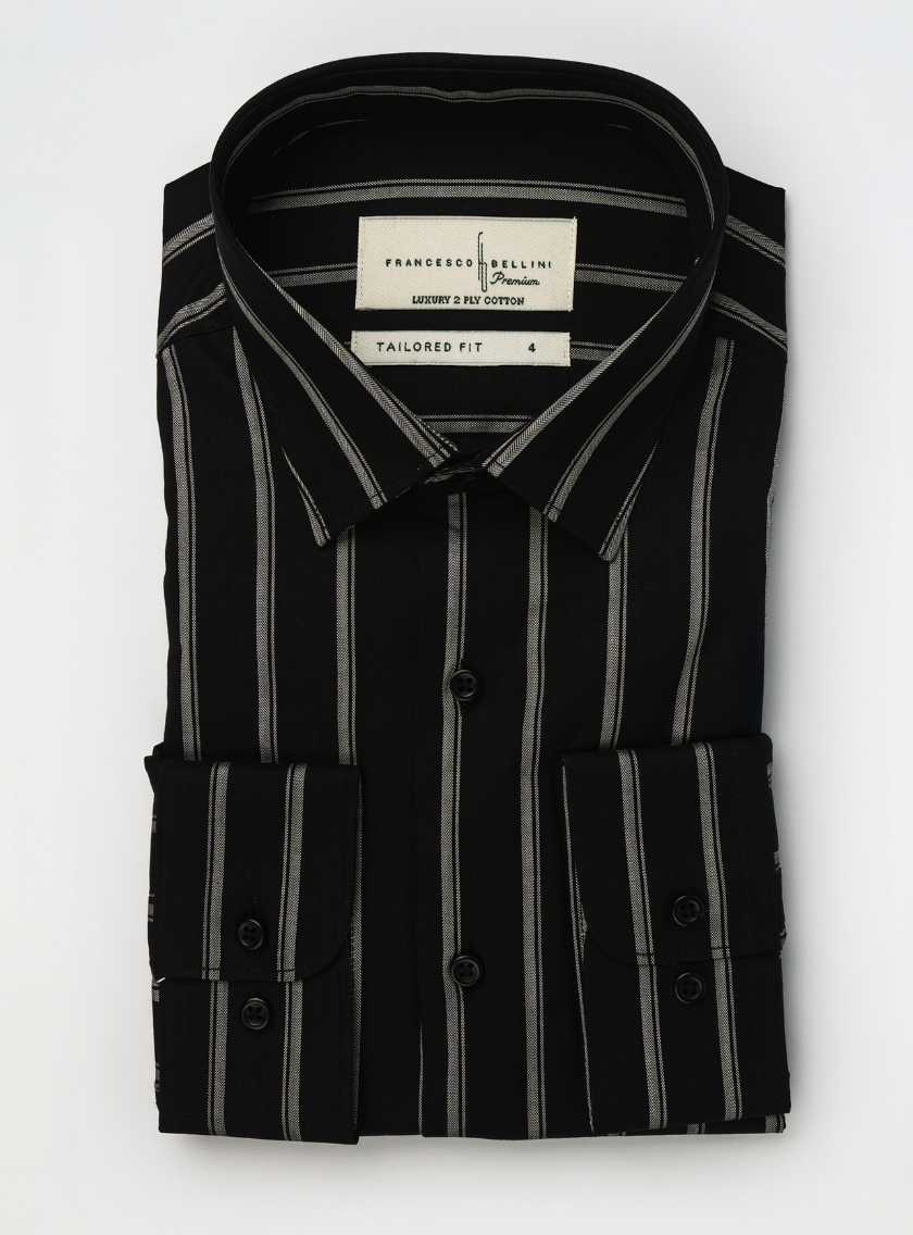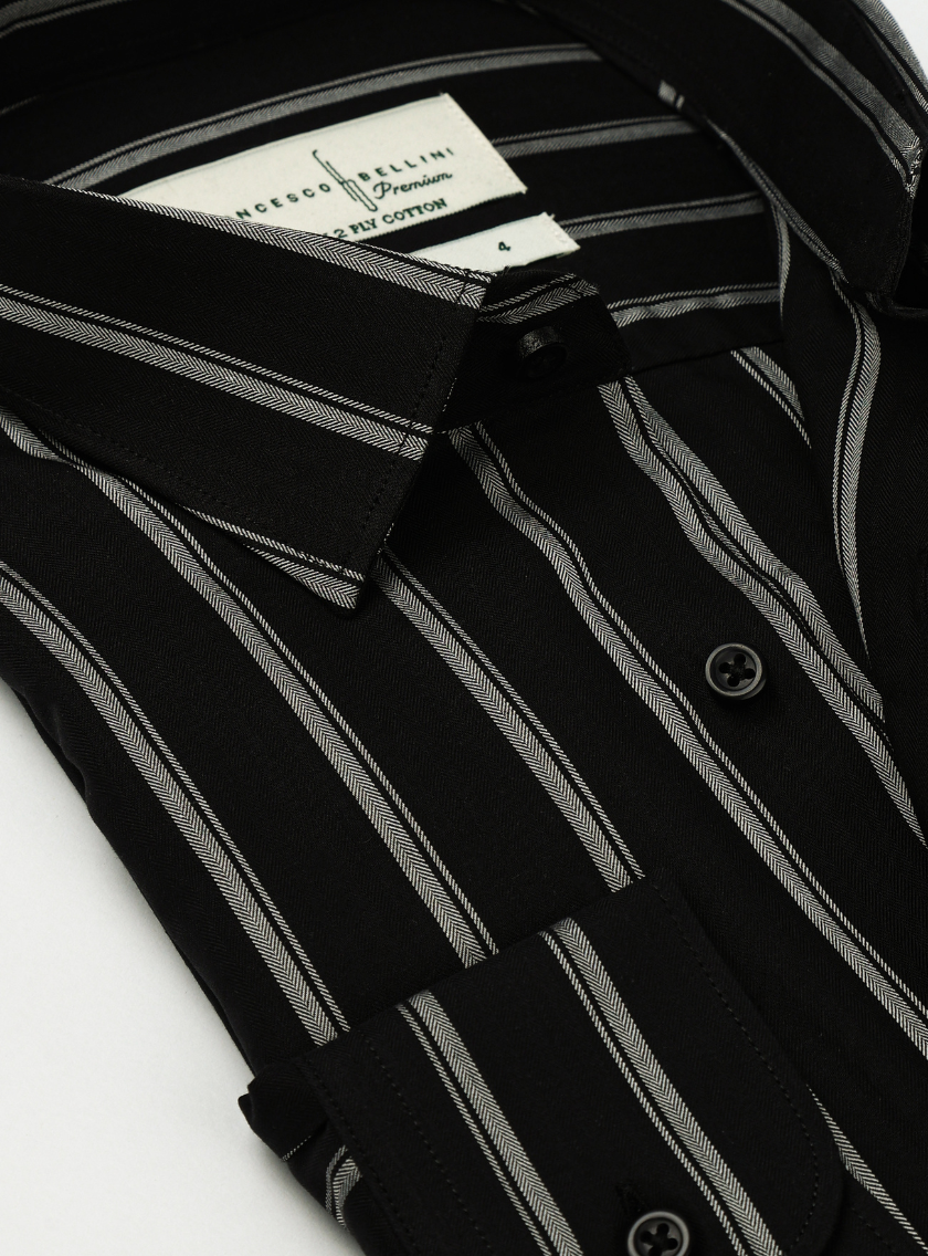 • Chemise Ajustée à Rayures Contrastées – Noir