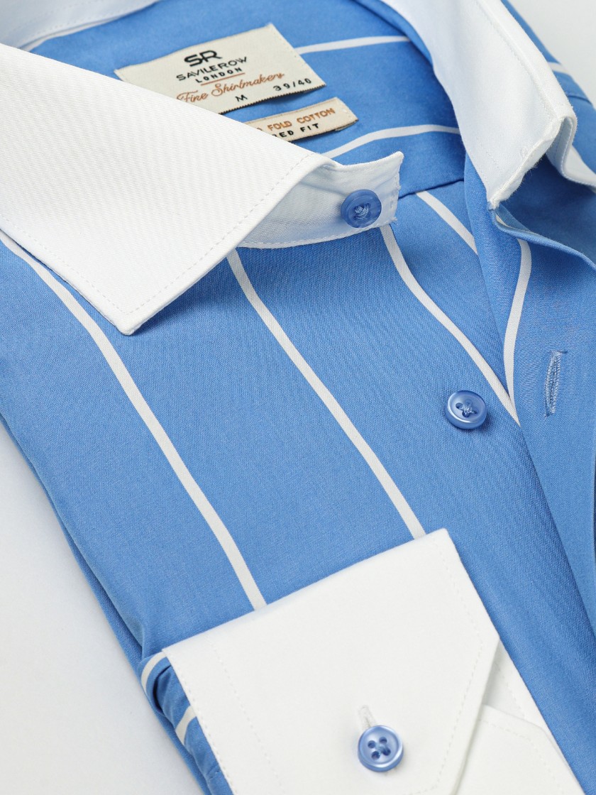 Osez la fraîcheur avec cette chemise ajustée bleu à rayures blanches. Le col et les poignets contrastés ajoutent une touche de distinction, idéale pour les journées professionnelles ou les événements habillés. Sa coupe ajustée épouse naturellement la silhouette, tandis que son coton haut de gamme assure confort et respirabilité toute la journée.