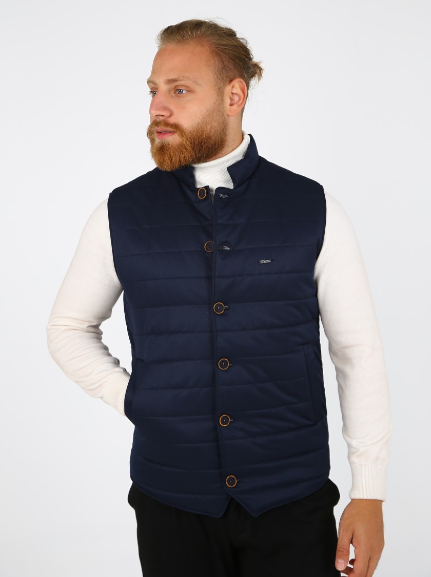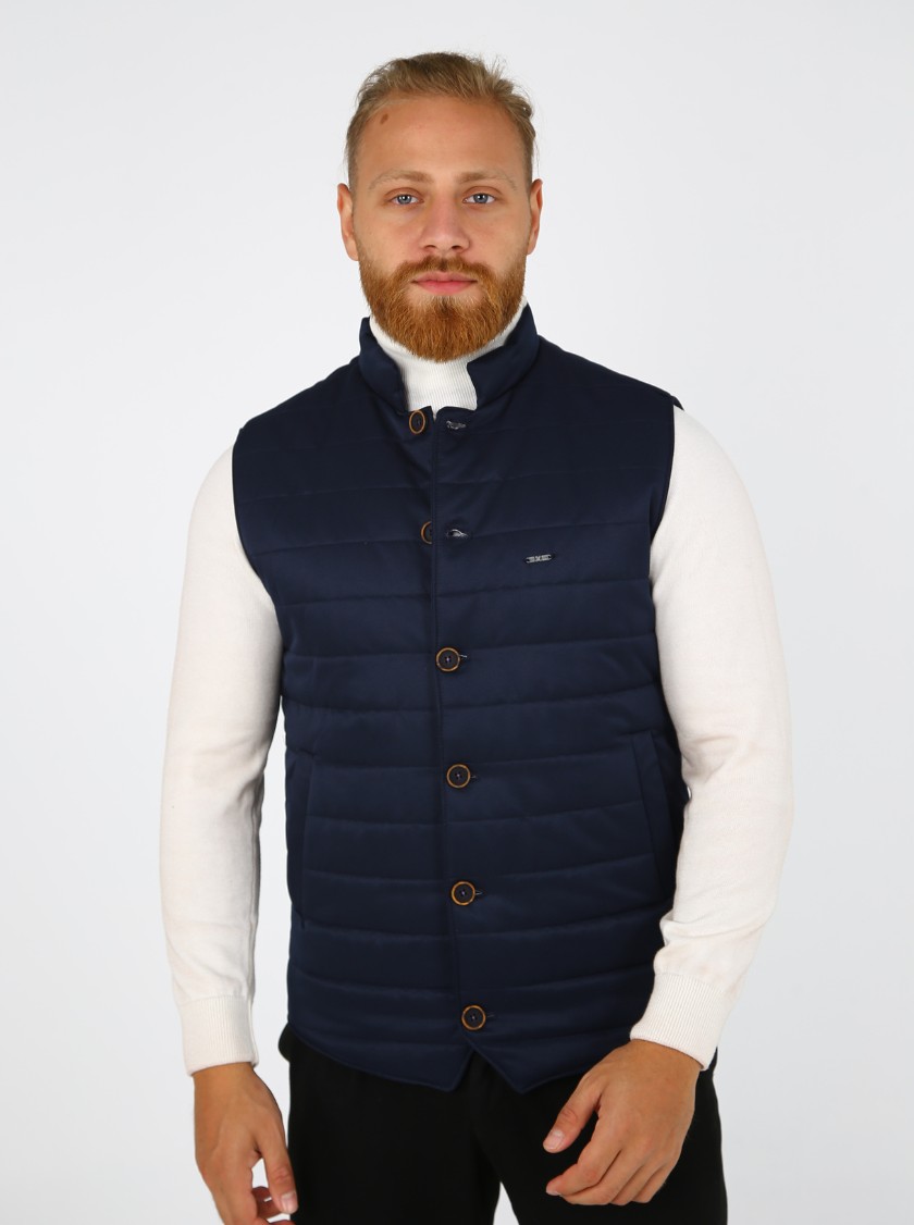 Gilet Matelassé Animé De Surpiqûres horizontale – Bleu Marine