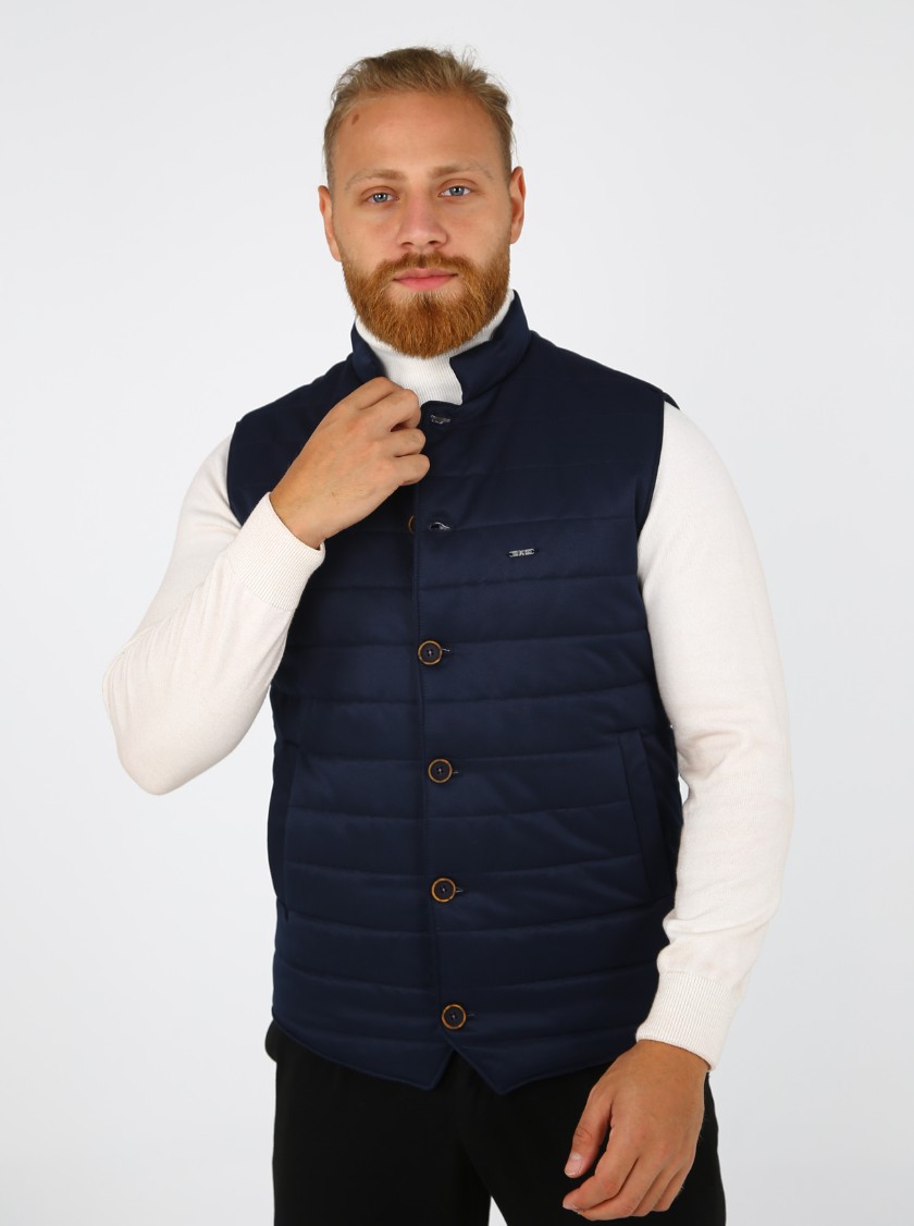 Transformez votre garde-robe avec notre gilet matelassé bleu marine, rehaussé de surpiqûres horizontales élégantes. Une touche moderne pour un style audacieux et sophistiqué – Voir plus
