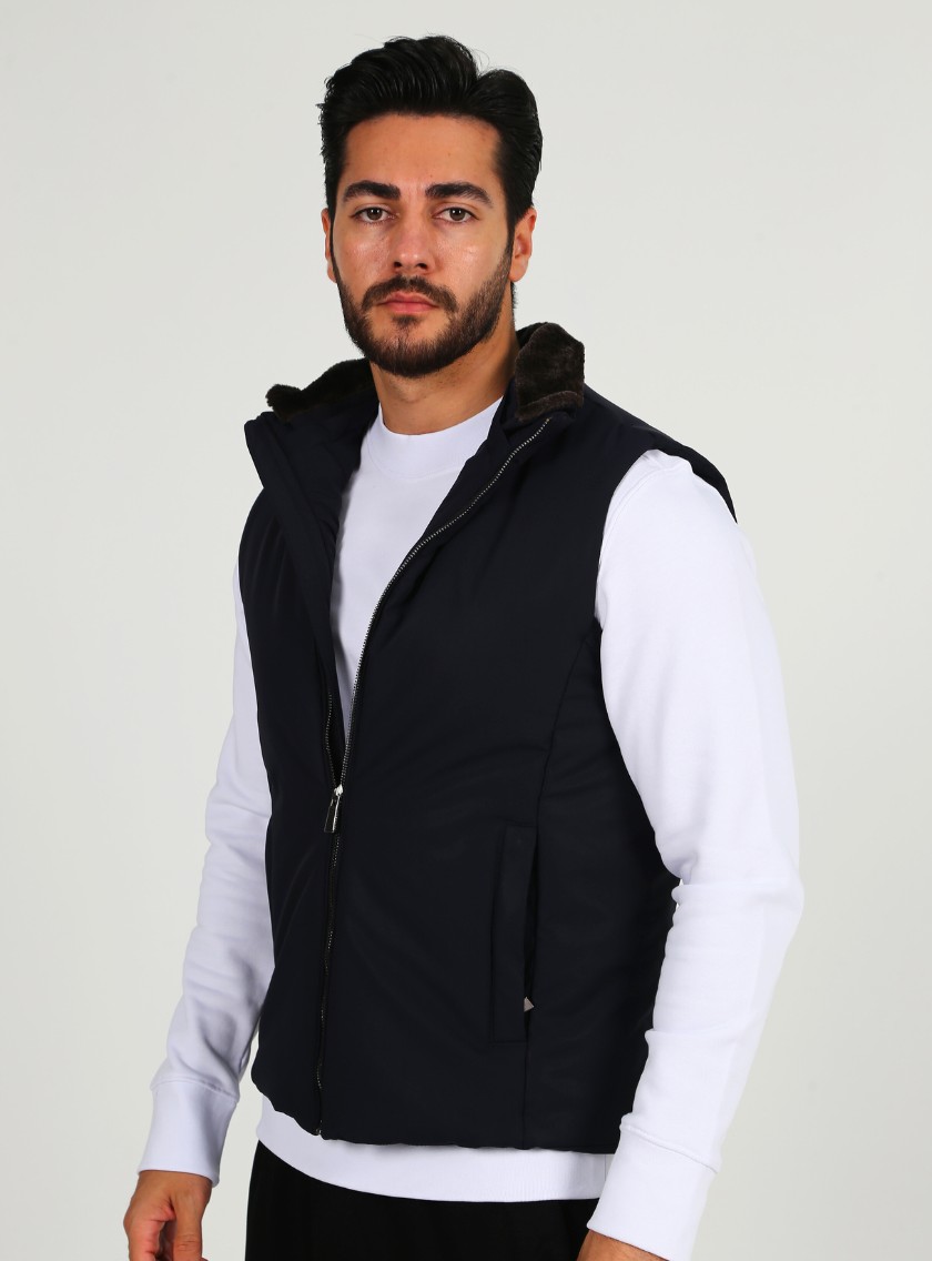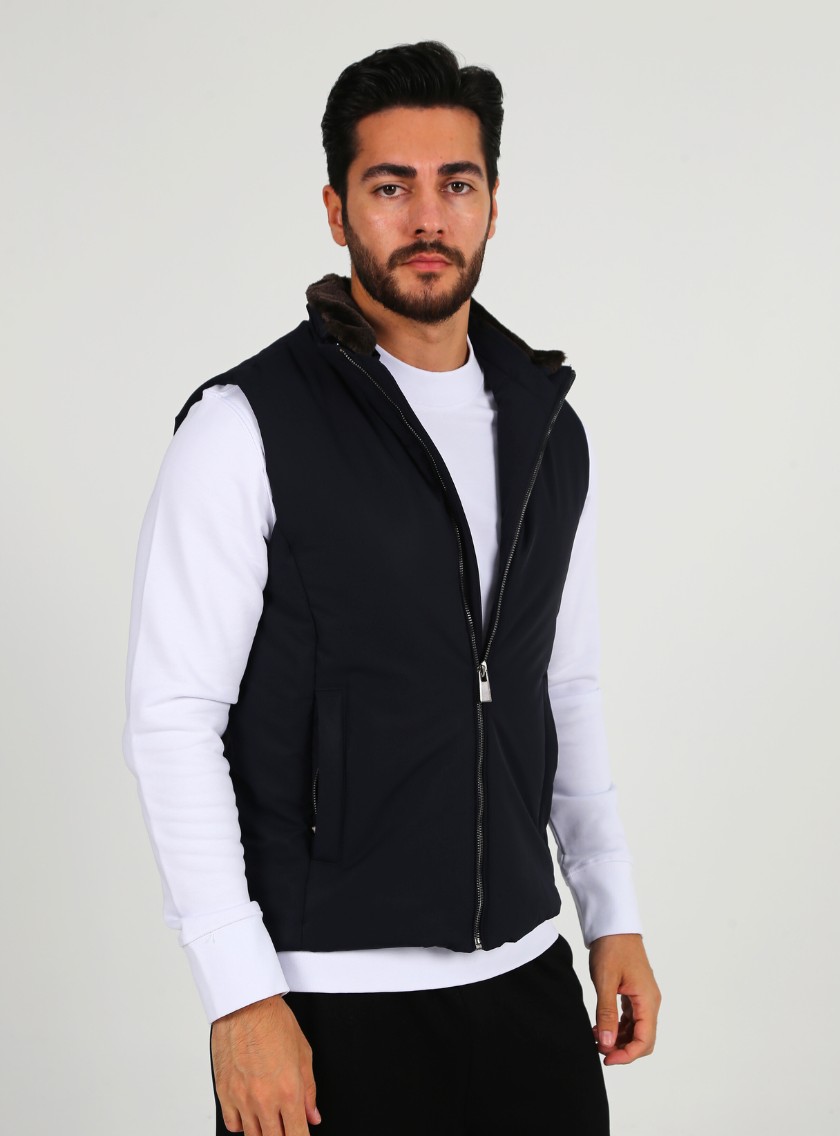 Gilet Matelassée Sport À Fermeture Éclair – Bleu Marine