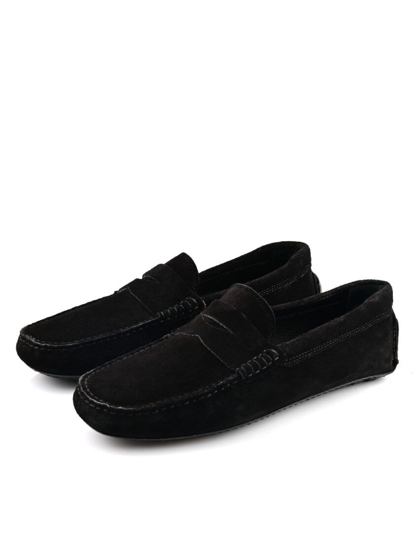 Optez pour ce mocassin en daim noir, alliant confort et élégance, parfait pour des occasions décontractées – Voir plus