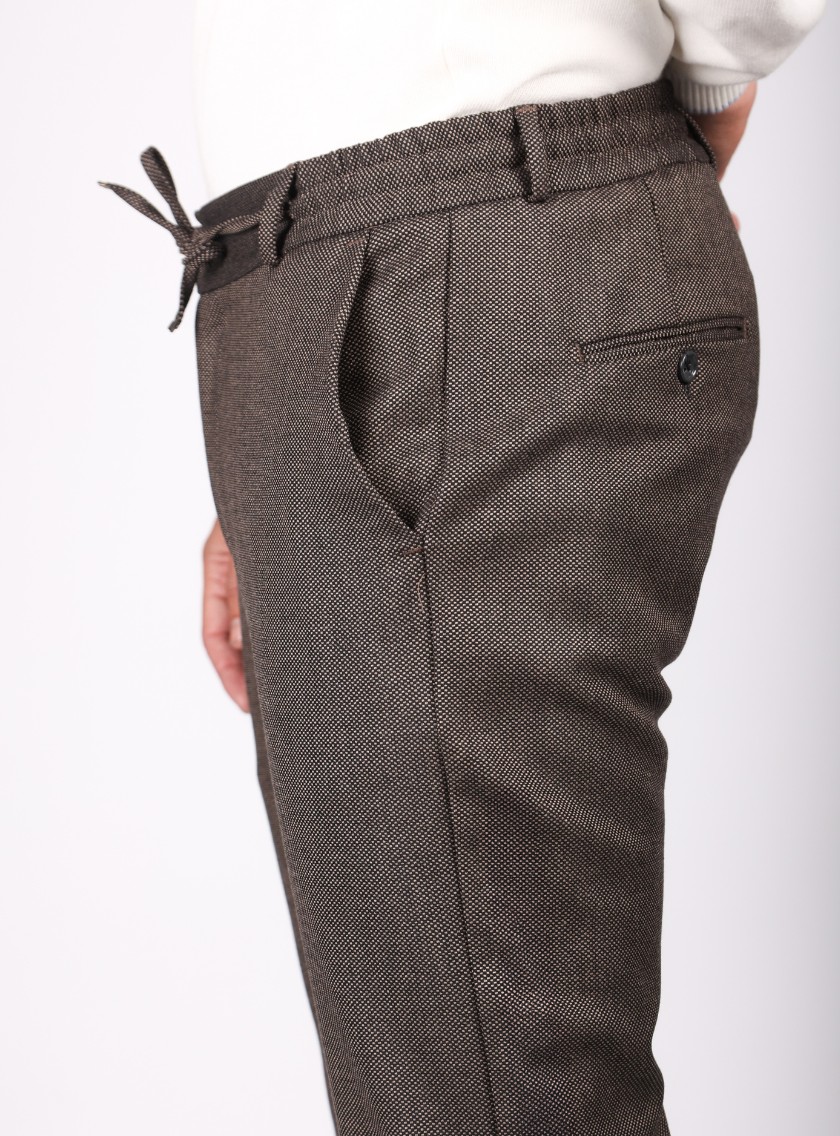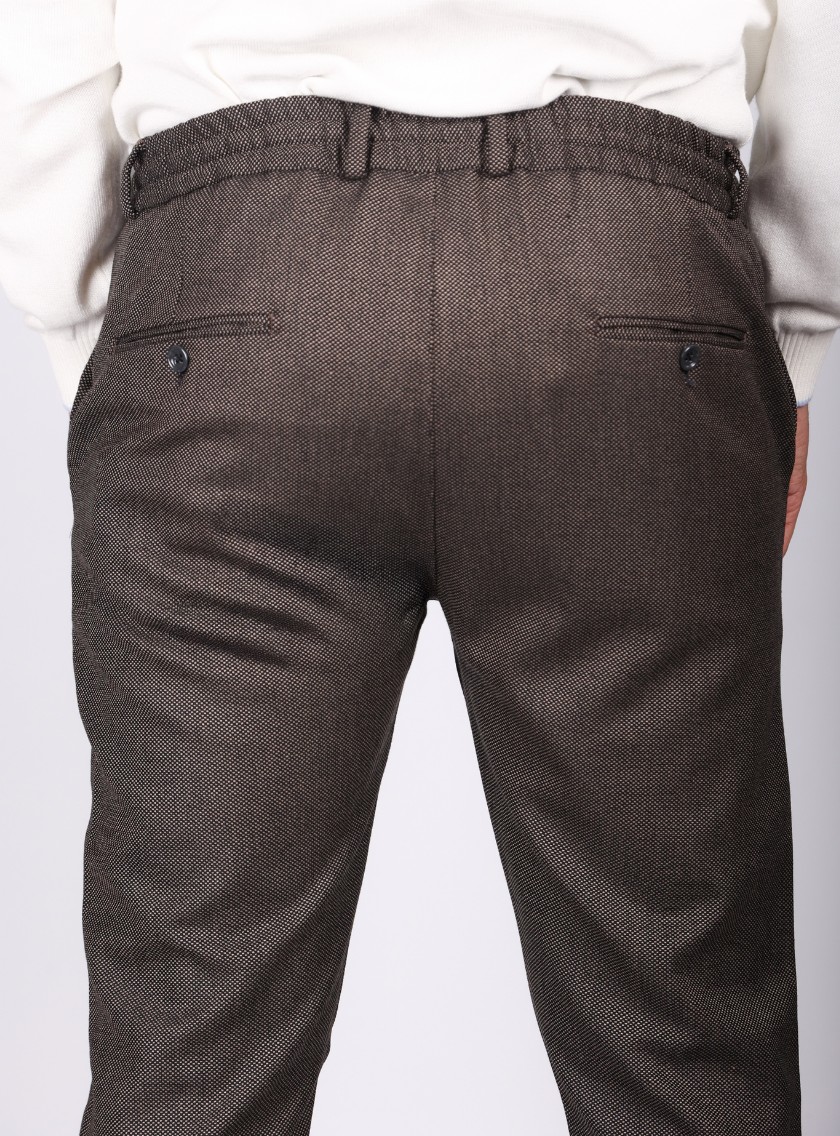 Ce pantalon slim classique sport en marron combine confort et sophistication. Sa coupe ajustée valorise la silhouette, et sa teinte chaleureuse en fait un choix polyvalent. Il est équipé de deux poches italiennes à l’avant et de deux poches passepoilées boutonnées à l’arrière, complétées par une fermeture zippée et boutonnée pour un ajustement parfait.