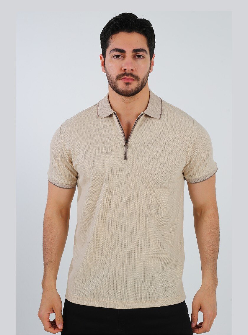 Améliorez votre garde-robe avec ce polo décontracté beige à col zippé, parfait pour les moments de détente. Réalisé dans un tissu texturé, il offre une sensation agréable tout au long de la journée. Associez-le facilement à un jean pour un look casual ou à un pantalon chino pour une allure plus soignée. Attirez les regards avec son design classique et sa coupe décontractée qui met en valeur votre silhouette.