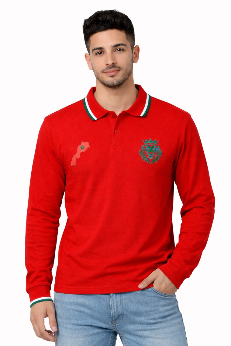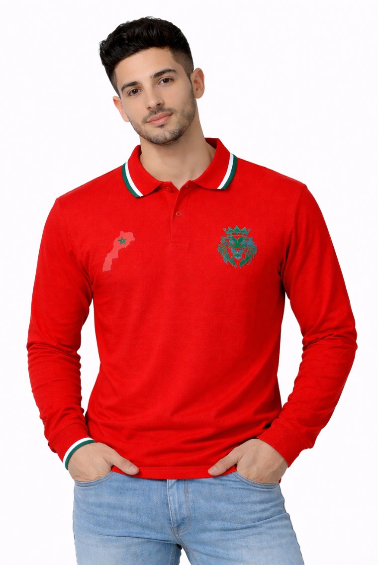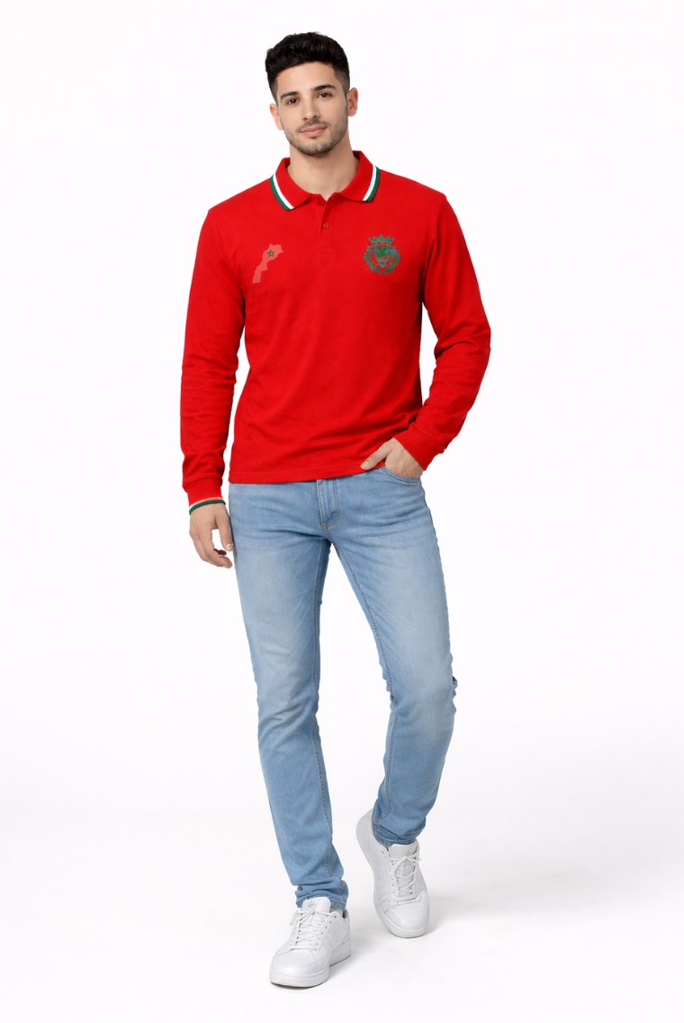Polo Manches longues à Col Rouge Boutonné – Rouge