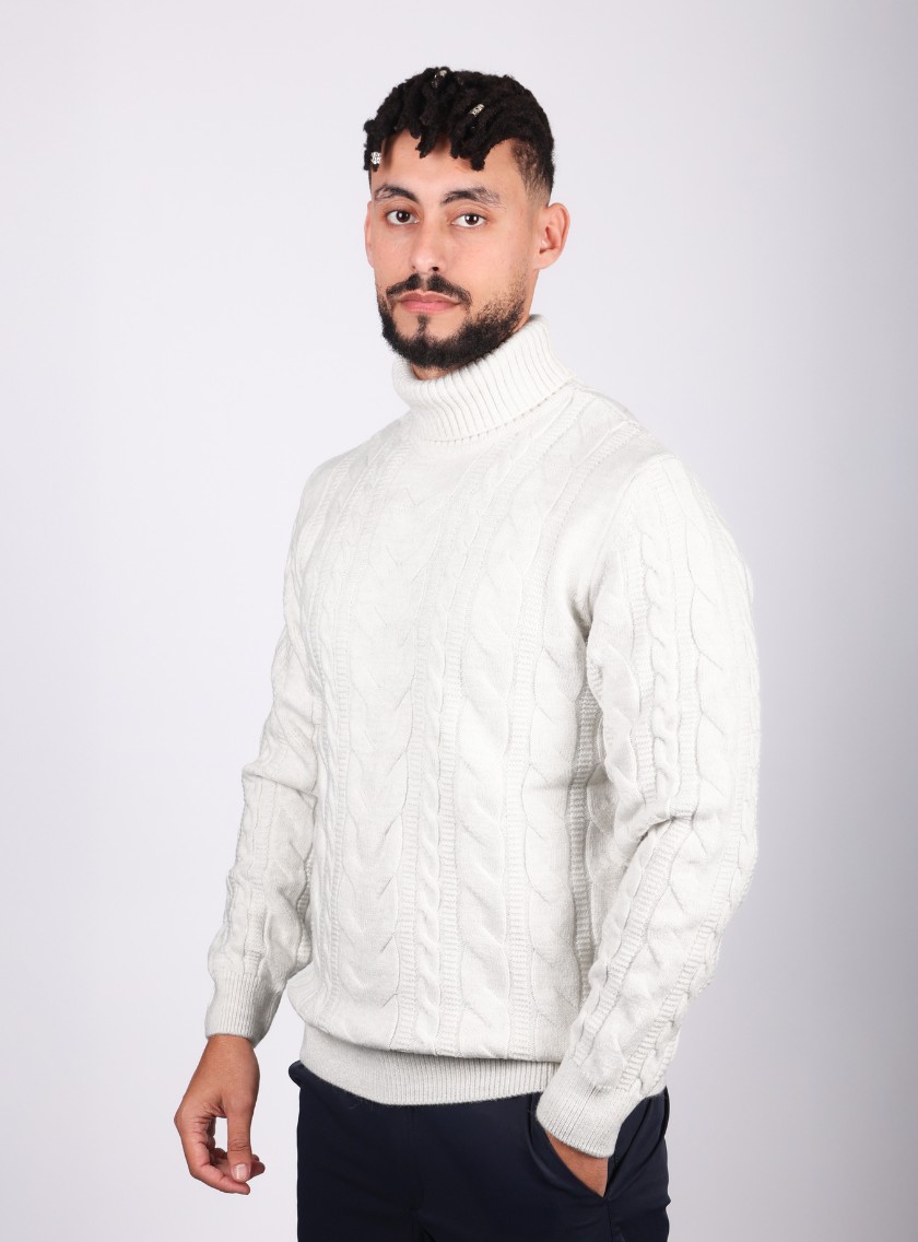 Pull à Col Roulé Torsadée – Blanc