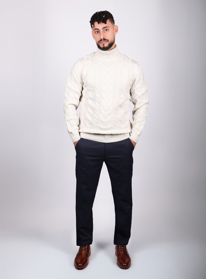 Soyez le premier à laisser votre avis sur “Pull à Col Roulé Torsadée – Blanc”