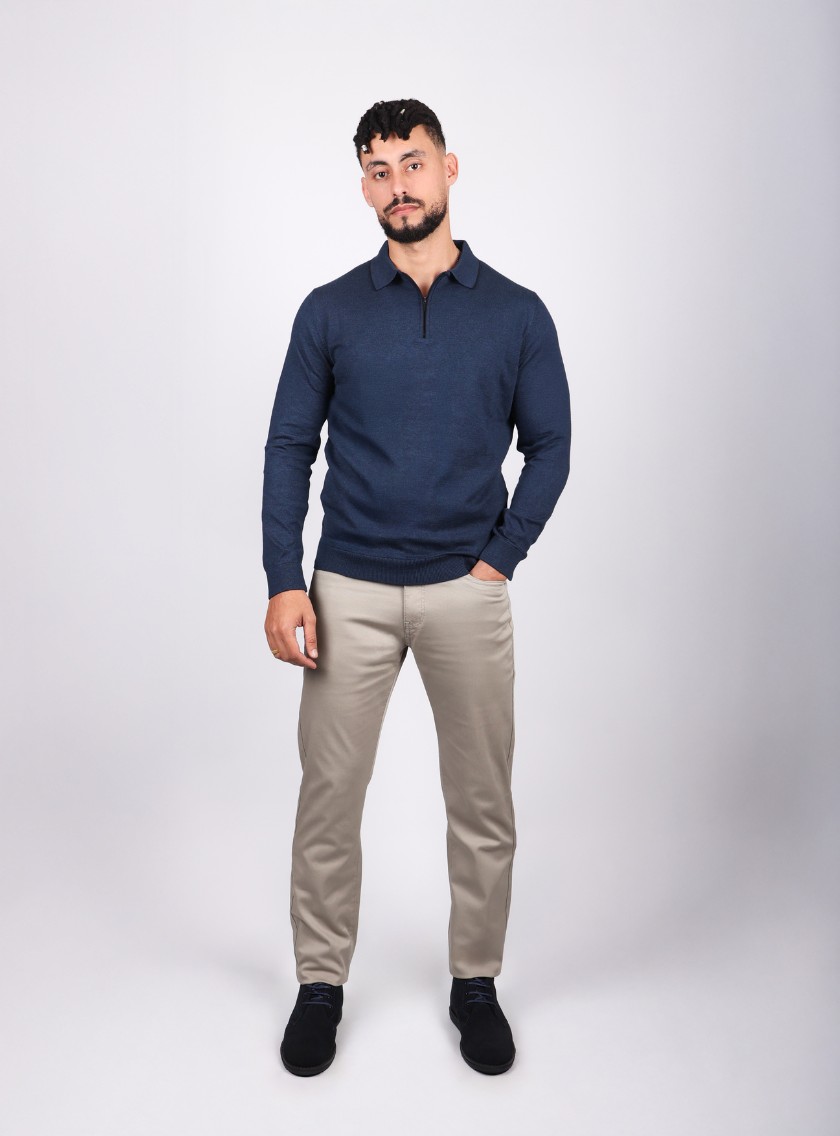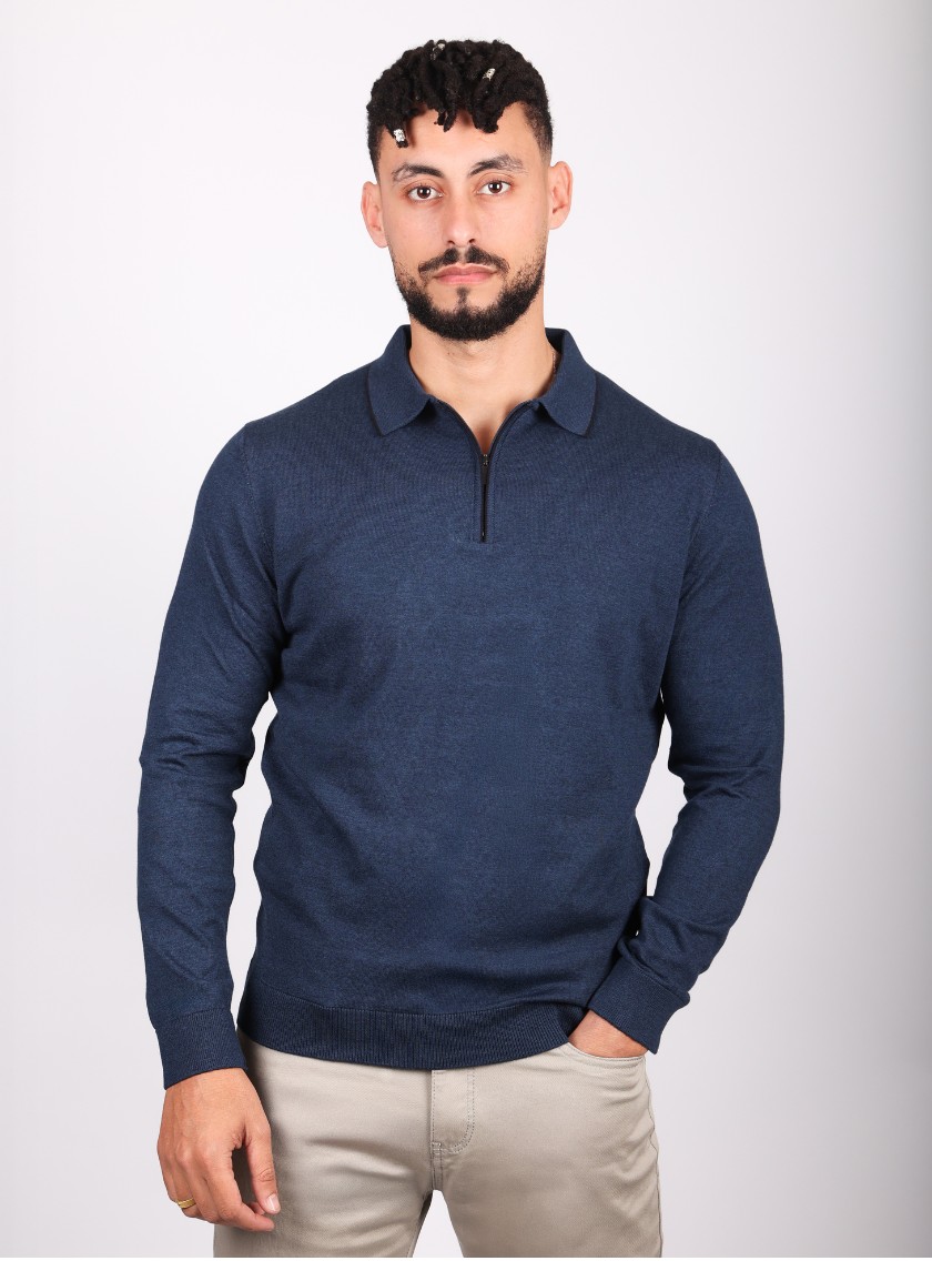 Découvrez un look urbain et élégant avec ce pull uni en bleu marine . Associé à un pantalon chino ou jean, cette jacket apporte une touche de style décontracté – Voir plus