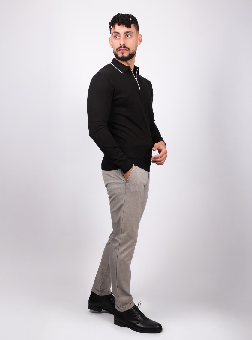 Découvrez un look urbain et élégant avec ce pull uni en noir . Associé à un pantalon chino ou jean, cette jacket apporte une touche de style décontracté – Voir plus