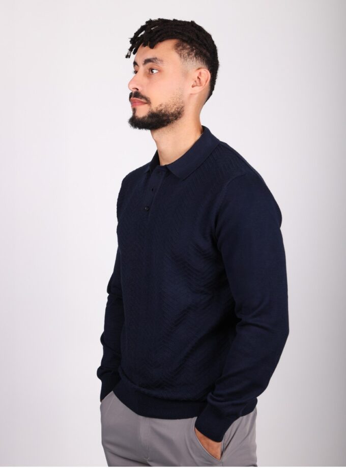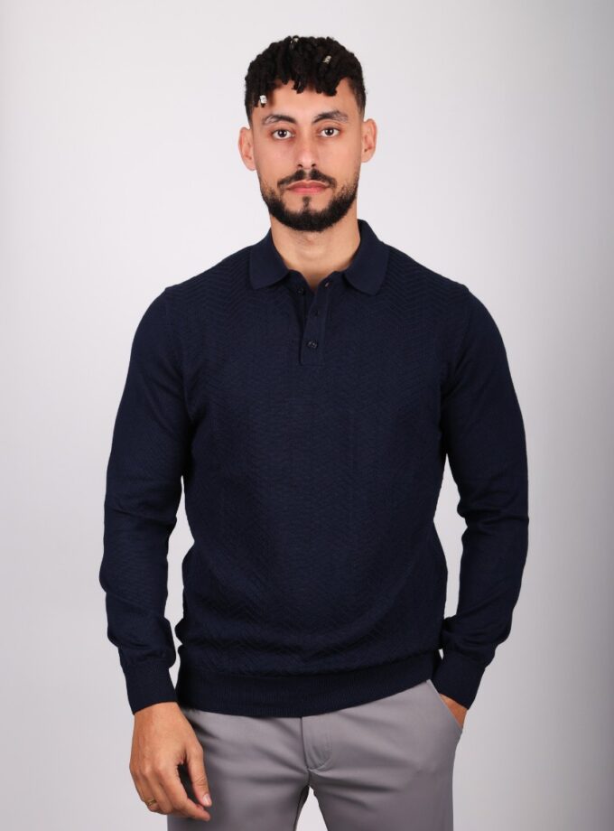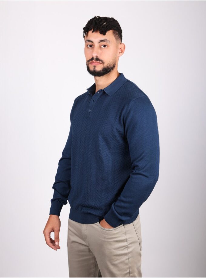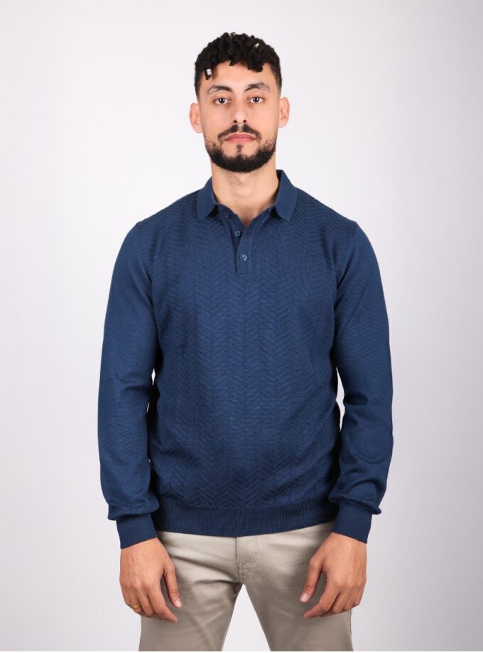 Pull Col Polo Boutonné Fantaisie – Indigo