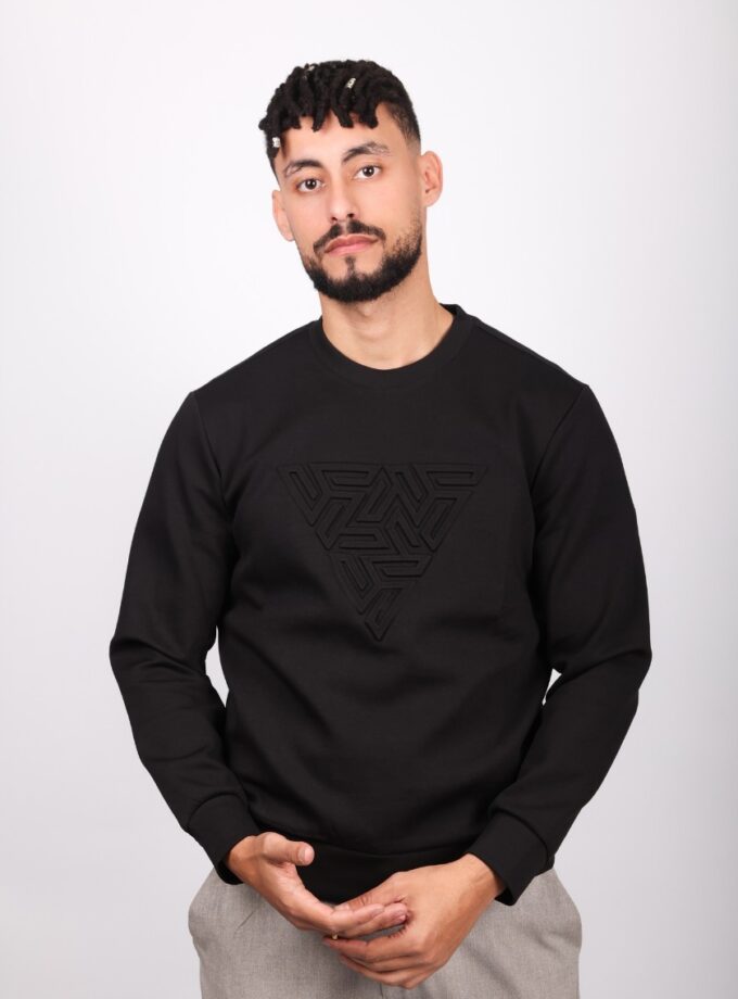 Sweatshirt Col Rond Imprimé – Noir
