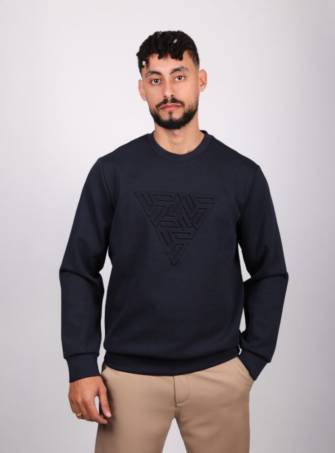 Sweatshirt Col Rond Imprimé – Bleu Marine