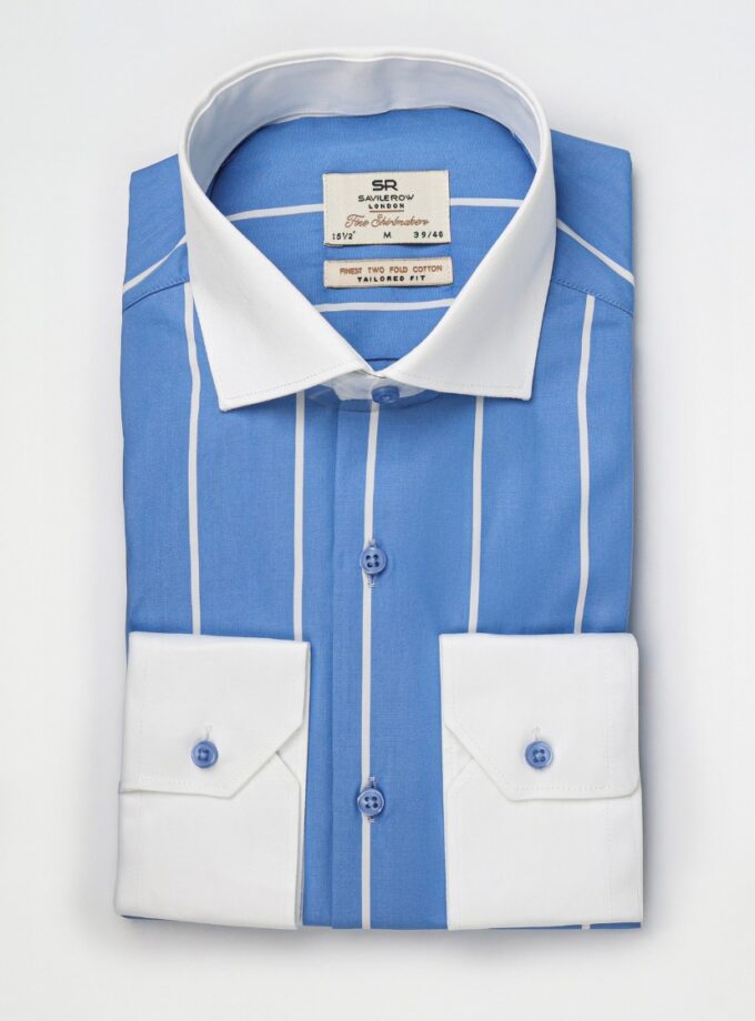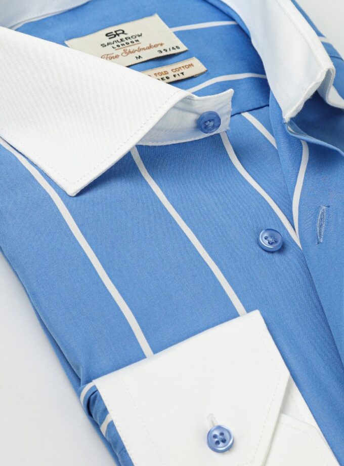 • Chemise Ajustée rayé Col Blanc Poignet Blanc – Bleu