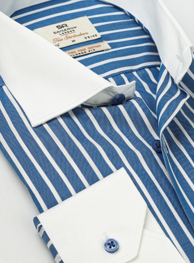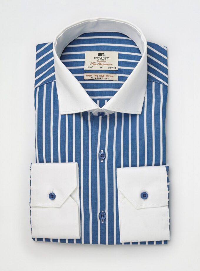• Chemise Ajustée Rayé Col Blanc Poignet Blanc – Bleu