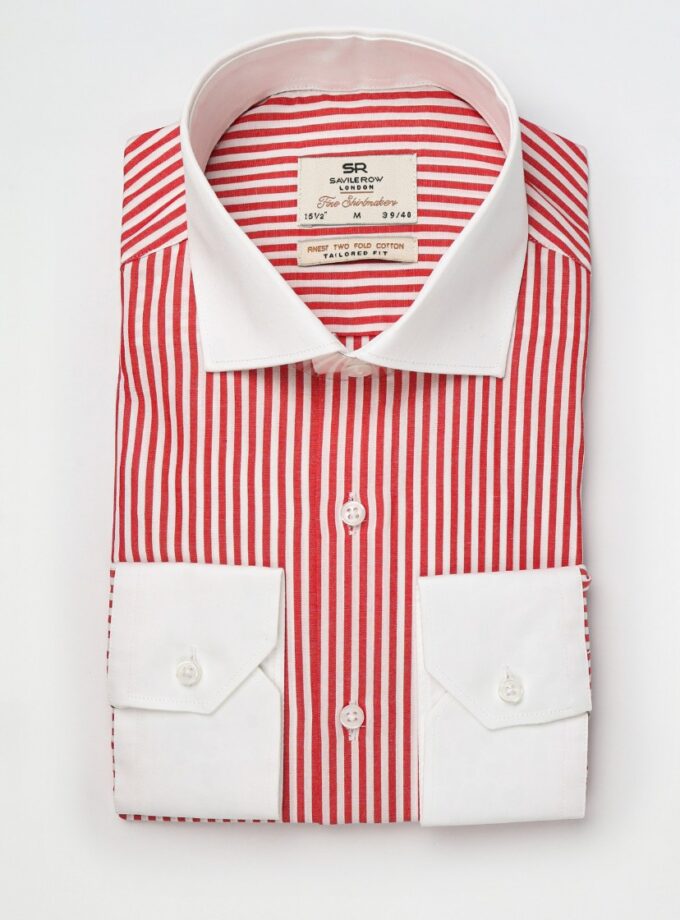 • Chemise Ajustée rayé Col Blanc Poignet Blanc – Bordeaux