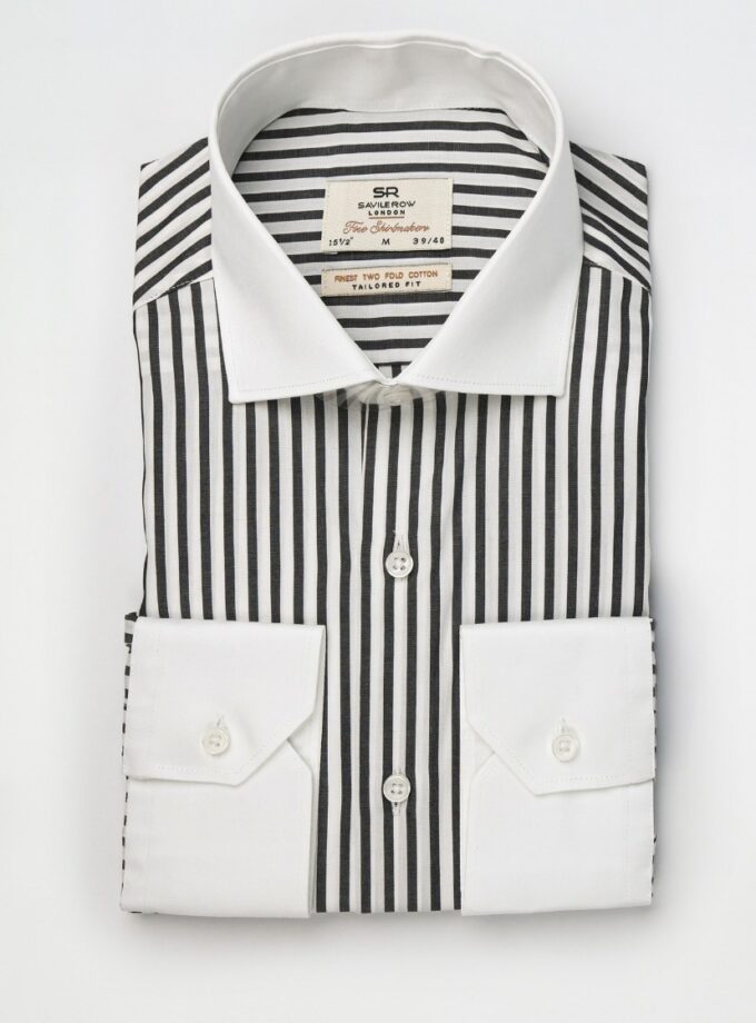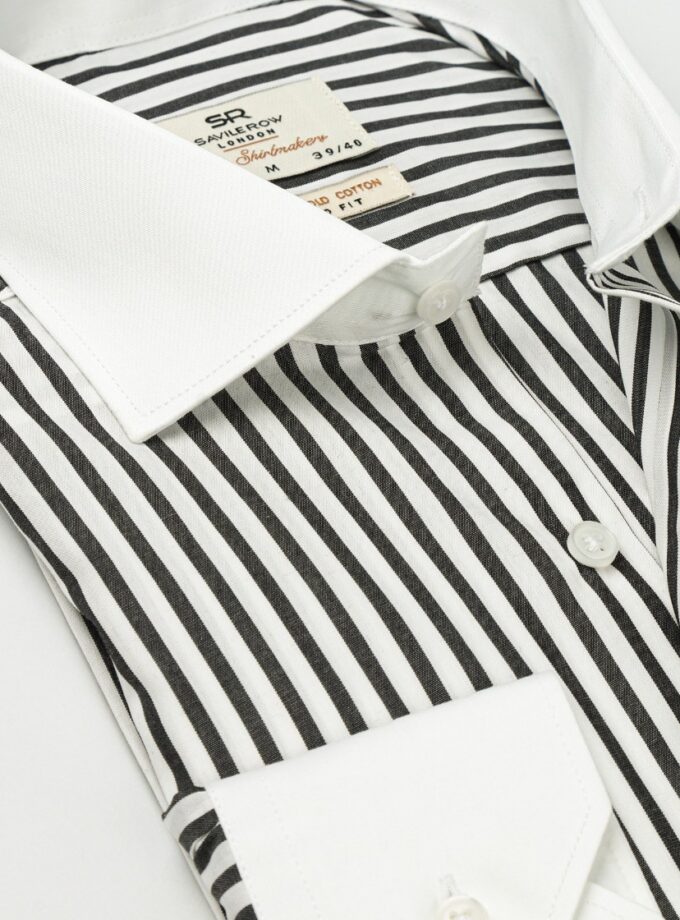 • Chemise Ajustée rayé Col Blanc Poignet Blanc – Noir